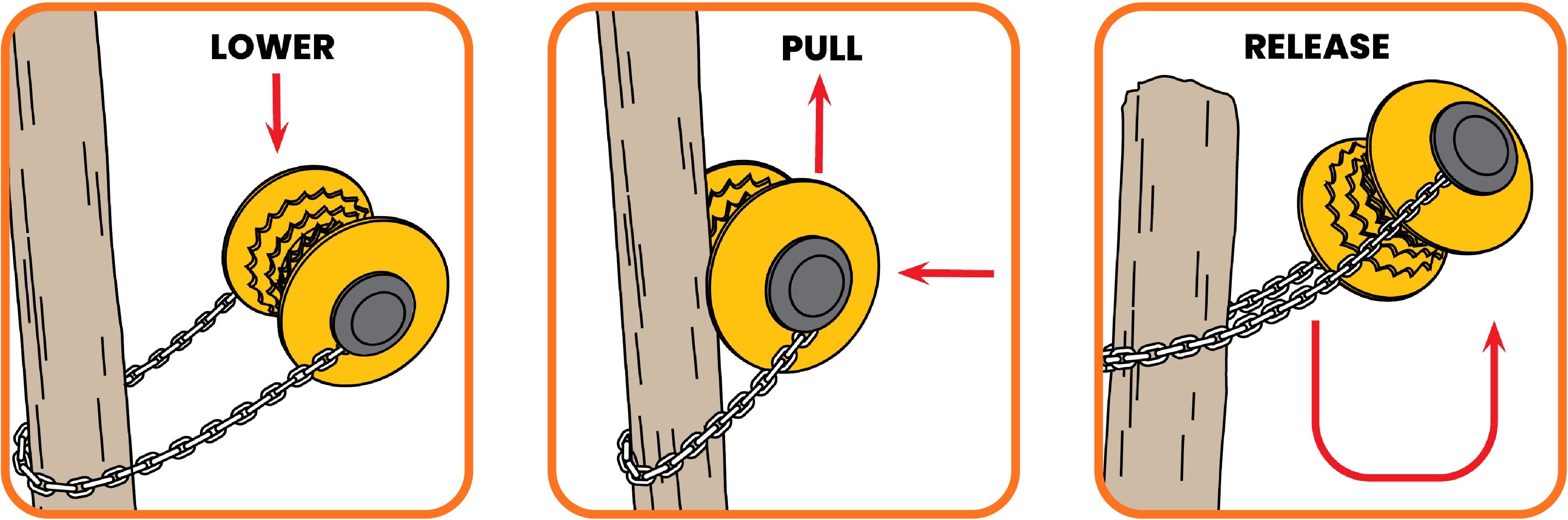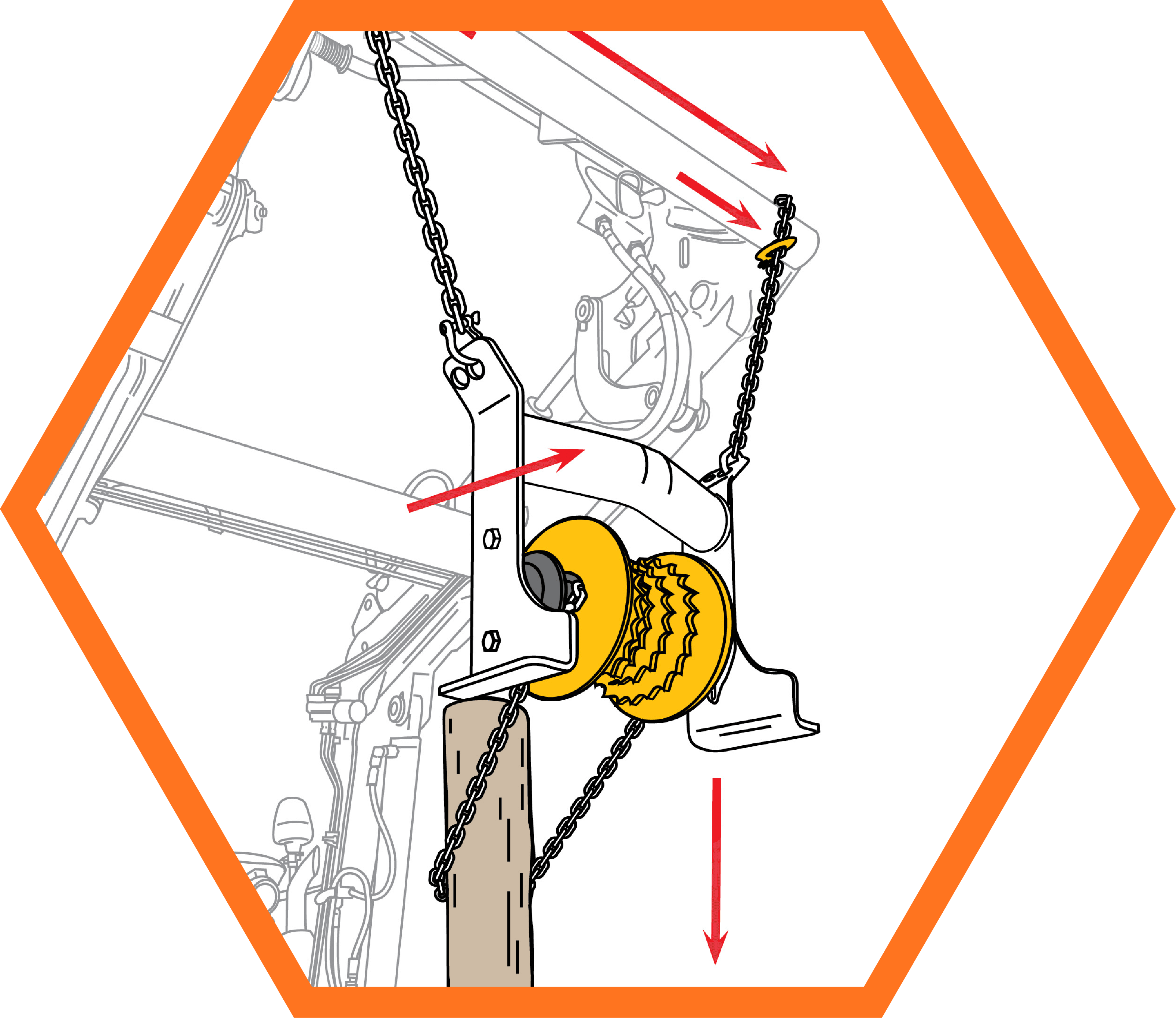 What used to be a dangerous two-man job, is now a safe, quick, effortless, one-man operation. Lower the chain around the post with your loader. As you lift, the toothed spool winds the chain tight, locking the post in an inescapable grip. Keep lifting to remove the post with ease. Drop it where you want, release tension and move onto the next one.